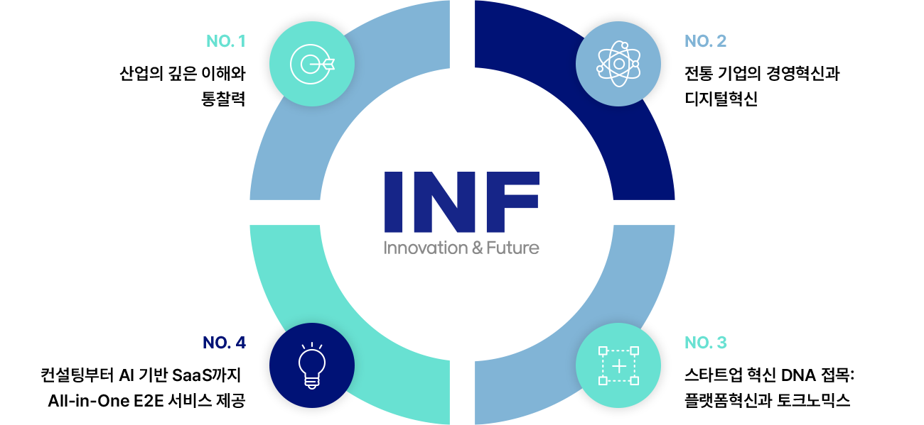 INF는 기업혁신의 충분한 경험을 갖춘 글로벌 컨설팅 출신의 파트너들과